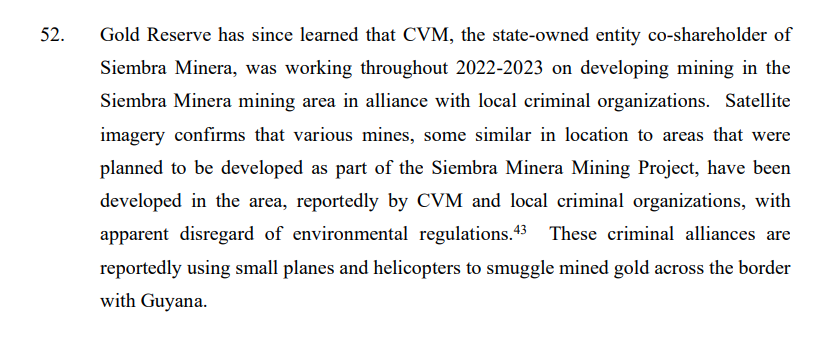 Despite having its gold blacklisted by the Western gold markets, Maduro's regime stubbornly decided to independently mine Gold Reserve's expropriated Siembra Minera Mining Project, using narco-cartel capital to finance the project(https://static1.squarespace.com/static/678169d94a42245884c4f0f3/t/67c8bf5285fef21c65fa9d10/1741209426758/GR_Vz_2025.03.05_Arb+II_Final+Draft+RFA+(330pm+ET).pdf):